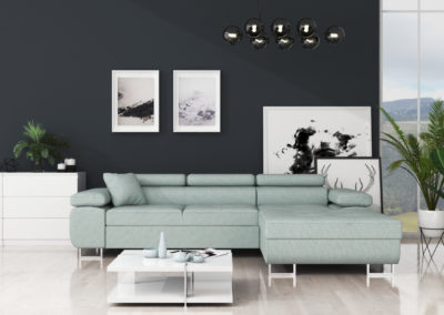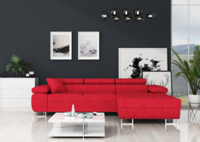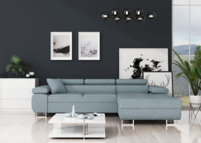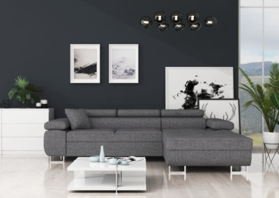 Nowoczesny narożnik do salonu, wykonany solidnie i z dbałością o detale. Możliwość wyboru w różnych tkaninach sprawia, że można go dopasować do każdego wnętrza.