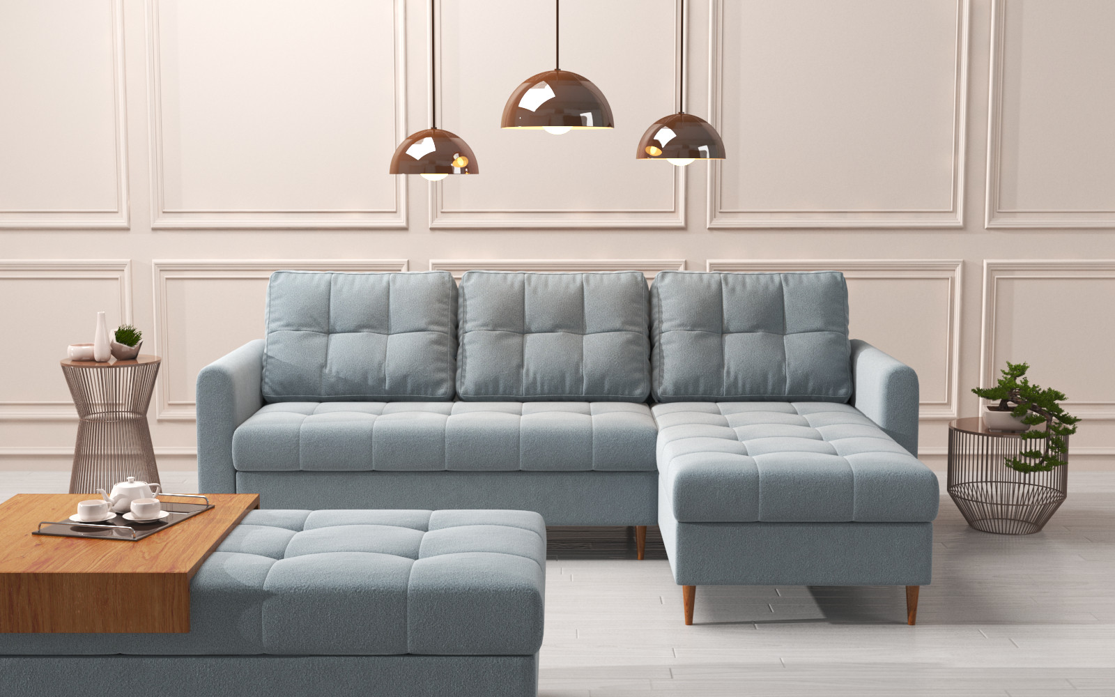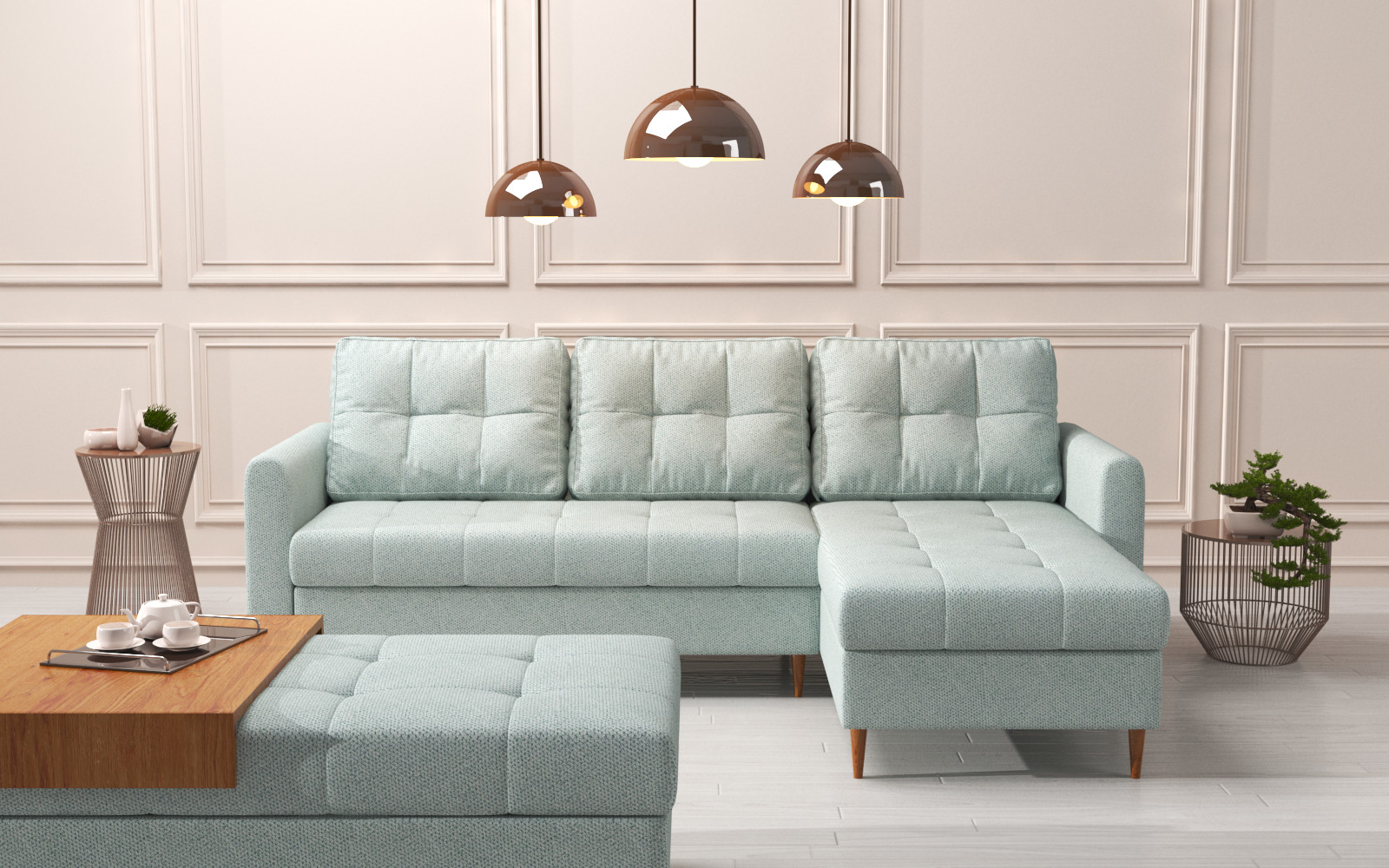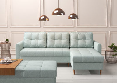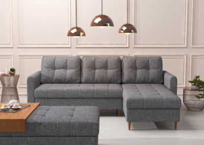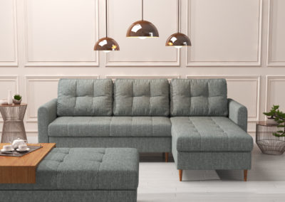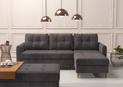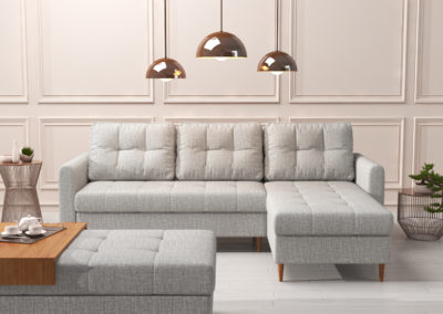 Nowoczesny narożnik do salonu, wykonany solidnie i z dbałością o detale. Możliwość wyboru w różnych tkaninach sprawia, że można go dopasować do każdego wnętrza.