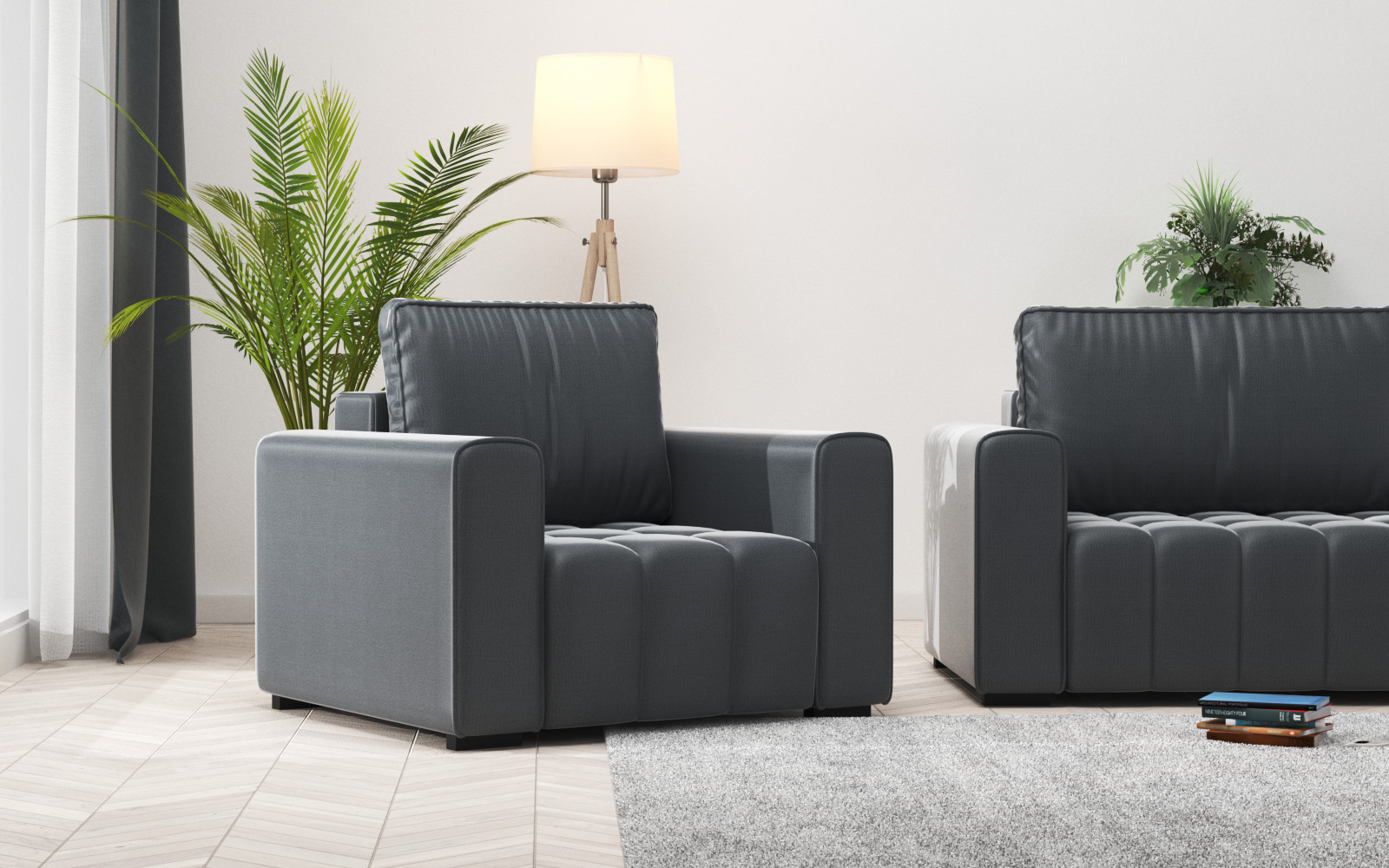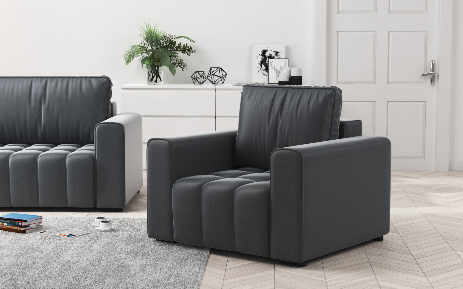 Bassa Fotel Stylowy i wygodny Opis produktu Nowoczesny i wygodny fotel, wykonany z dbałością o detale. Możliwość wyboru w wielu tkaninach, dzięki czemu dopasujesz go do każdego wnętrza. Szerokość: 108 cm Wysokość: 74/85 cm Głębokość: 89 cm Galeria Dostępny w zestawie Kanapa / Fotel / Pufa