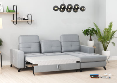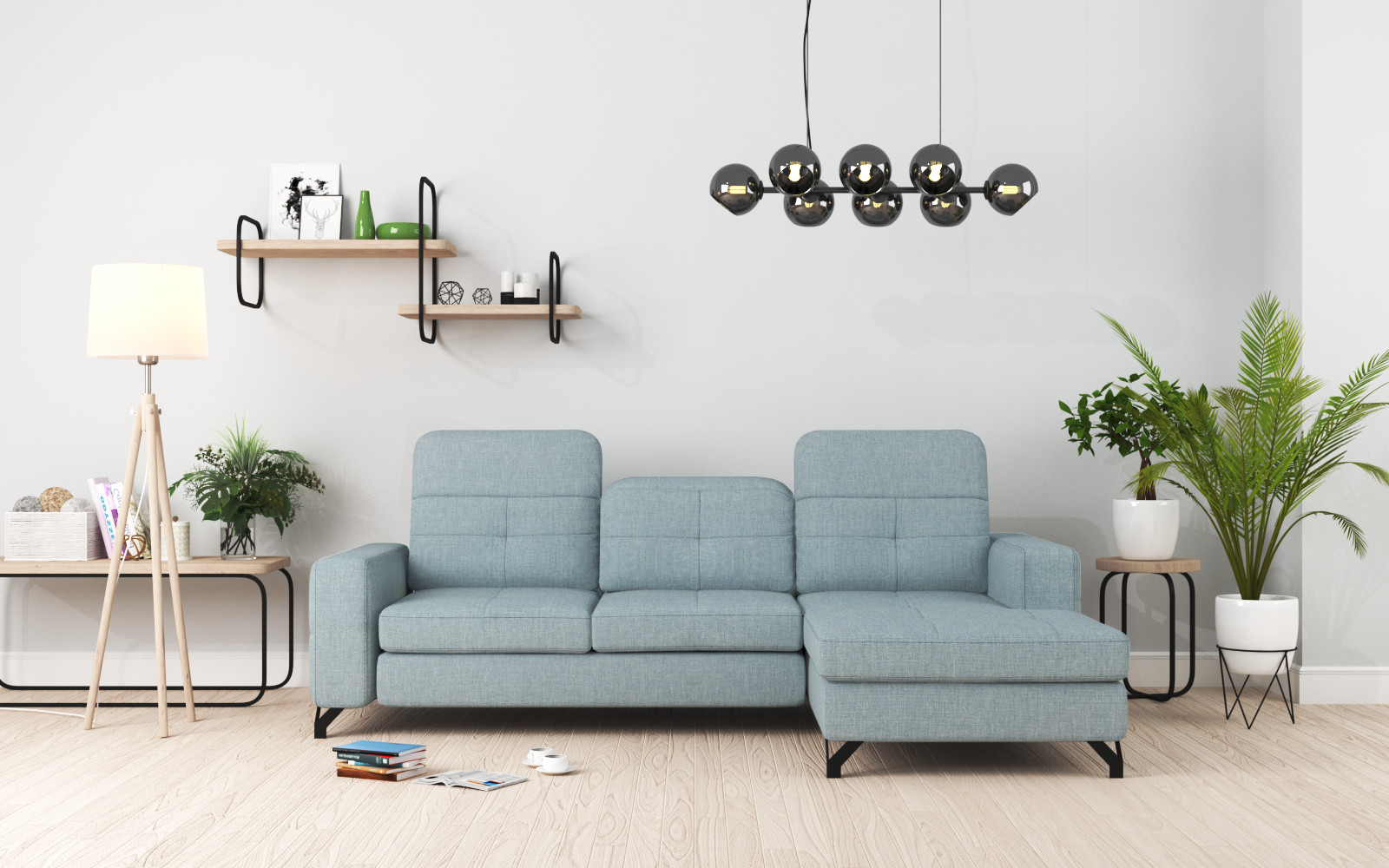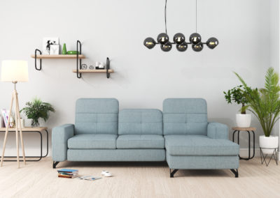 Nowoczesny narożnik do salonu, wykonany solidnie i z dbałością o detale. Możliwość wyboru w różnych tkaninach sprawia, że można go dopasować do każdego wnętrza.