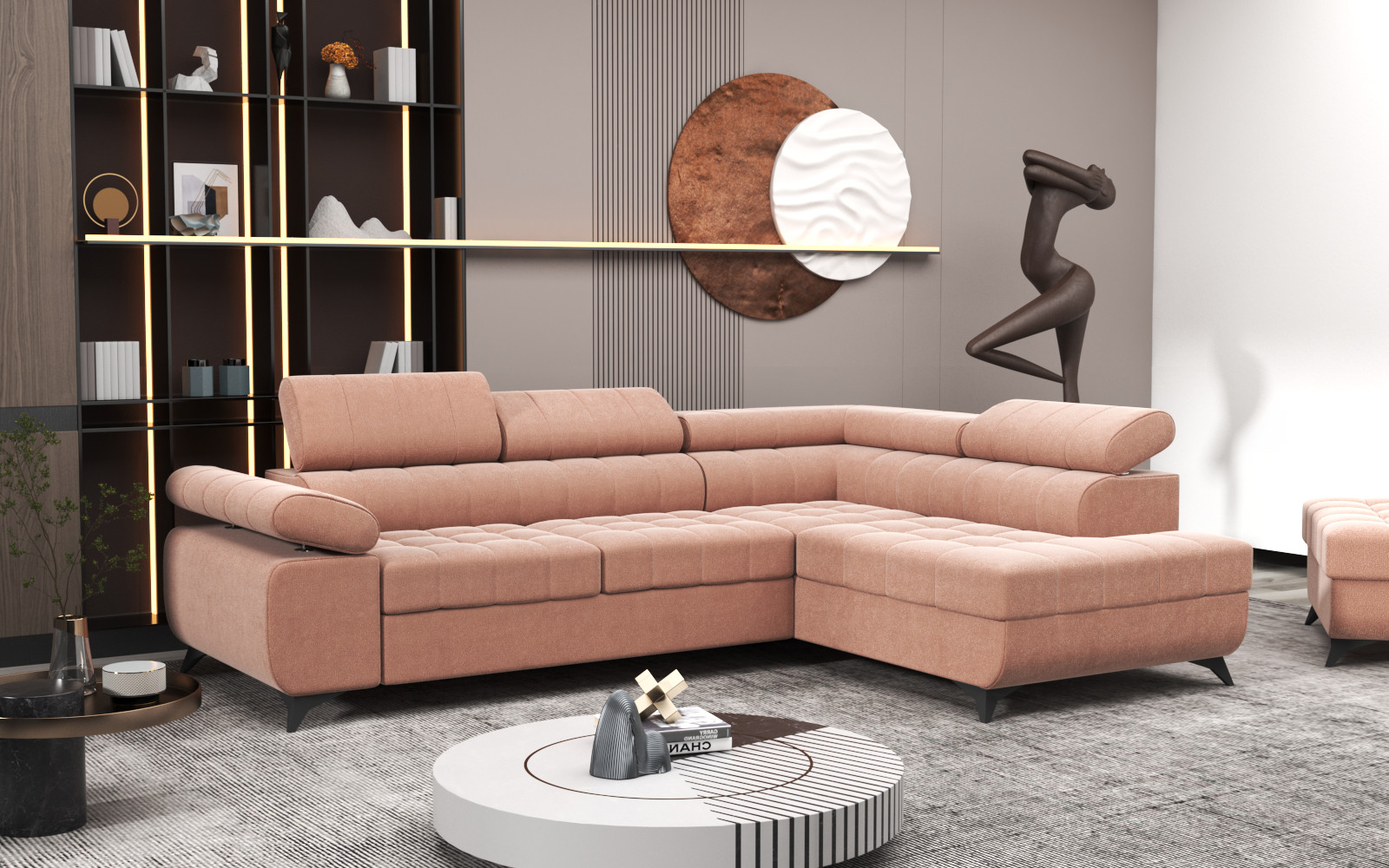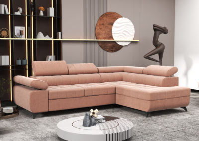 Nowoczesny narożnik do salonu, wykonany solidnie i z dbałością o detale. Możliwość wyboru w różnych tkaninach sprawia, że można go dopasować do każdego wnętrza.