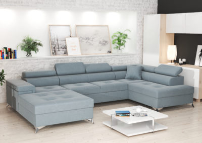 Nowoczesny narożnik do salonu, wykonany solidnie i z dbałością o detale. Możliwość wyboru w różnych tkaninach sprawia, że można go dopasować do każdego wnętrza.