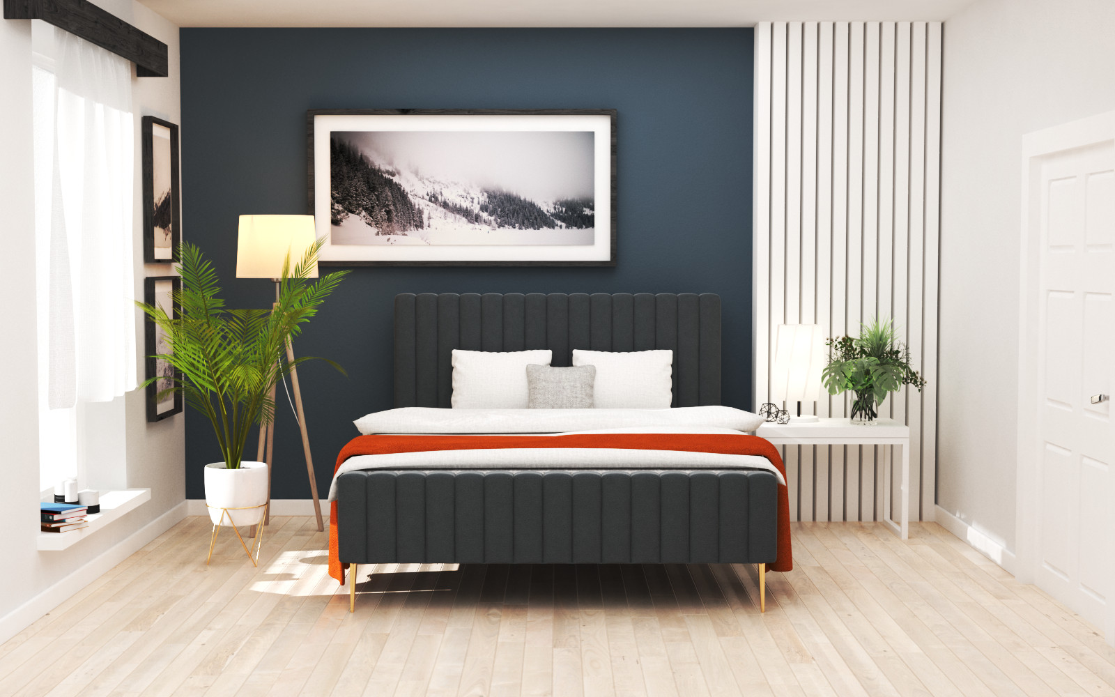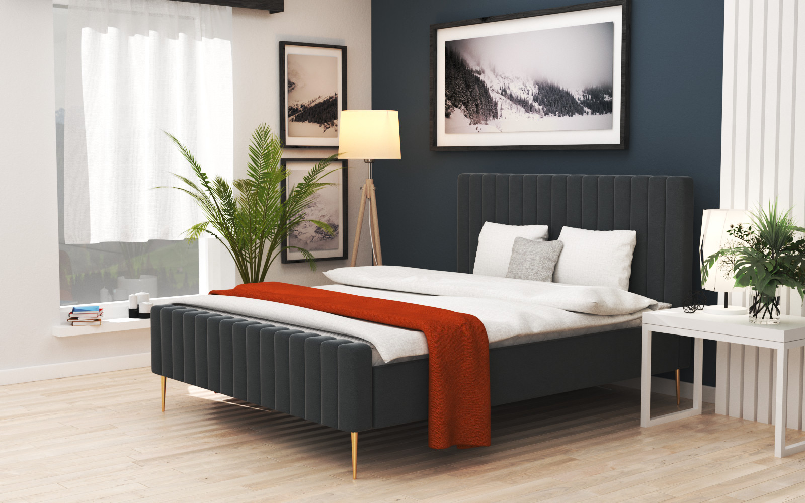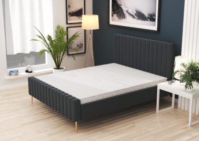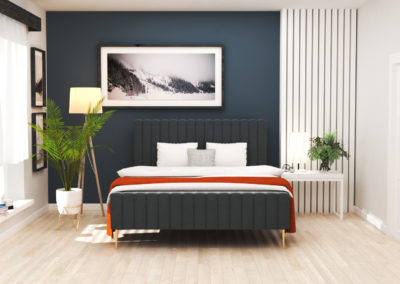 Nowoczesne łóżko do sypialni, wykonane z trwałych materiałów, z dbałością o szczegóły. Możliwość wyboru w różnych tkaninach sprawia, że można je dopasować do każdego wnętrza.