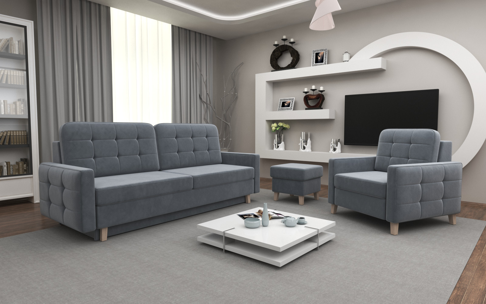 Visa Fotel Stylowy i wygodny Opis produktu Nowoczesny i wygodny fotel, wykonany z dbałością o detale. Możliwość wyboru w wielu tkaninach, dzięki czemu dopasujesz go do każdego wnętrza. Szerokość: 83 cm Wysokość: 93 cm Głębokość: 88 cm Galeria Dostępny w zestawie Kanapa / Fotel / Pufa